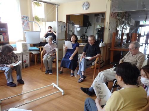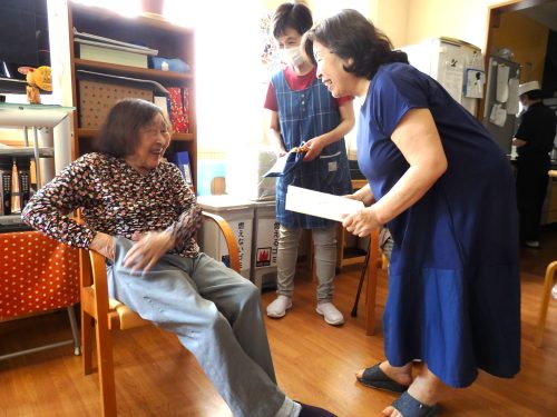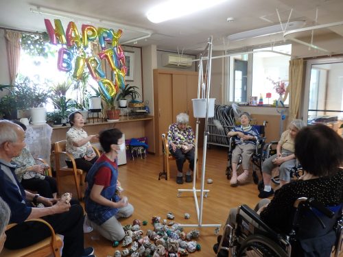 6月25日お誕生会で玉入れや懐かしい曲を歌いました。