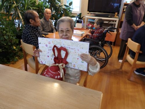 11月 お誕生会 2025.12.23 未分類 11月26日にお誕生会を行いました。 リズムゲームや昔懐かし昭和のお菓子クイズを行いました。 昭和のお菓子クイズでは3枚ほど、昭和で発売していた写真を 印刷したものを皆様に見て頂きました。 すると、「あ~、あったあった。懐かしい~。」と話されていました。 クイズで当たった景品(お菓子)は、皆様15時のおやつ(ケーキ)が 来る前にほとんどの方が召し上がられていました。 早い方は、10分もたたずに景品を完食されていました。 ≪ 春光・春光台地区センターにて落語・マジックショー イルミネーション ≫