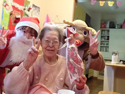 クリスマス会兼お誕生会 2025.12.27 未分類 12月24日にクリスマス会を行いました。 今年は、寒暖差が激しく風邪をひいてしまった方が数人いらっしゃいました。 クリスマス会3日前には、熱や風邪の症状は見られなかったのですが、 インフルエンザの流行時期の為今年は各階でクリスマス会を行いました。 皆様、クリスマスプレゼントが当たり中の品物を見て、 大変喜ばれていました。 ≪ クリスマスの飾り